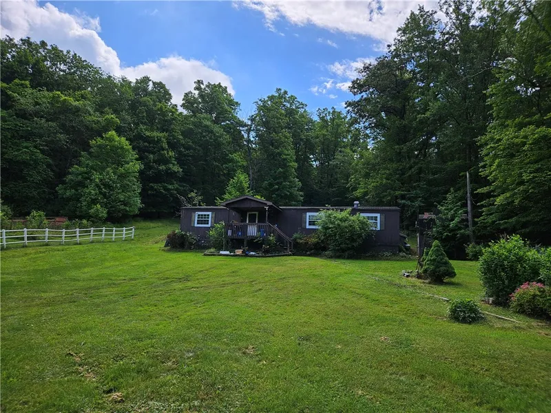 Home on Over 2.5 Acres! Open floor plan with spacious Living Room Leading into the Dining Room, with Pellet Stove and Kitchen. With extra counterspace and Laundry Area right off to the Side. Master Bedroom, with plenty of closet space and a private Full Bathroom. Two more bedrooms down the hall form the Kitchen, with another Full Bathroom. Back patio area! Large storage shed and extra out-buildings on the property!