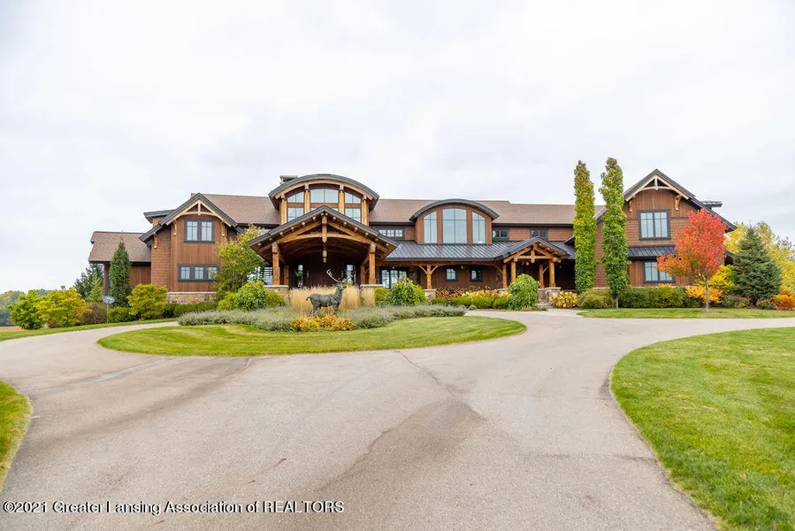 Have you ever dreamed of owning your own lodge? This is your opportunity! Outstanding offering in this amazing timber framed home nestled on over 70 acres of rolling land. A true retreat and getaway with this home and cottage in one to enjoy nature at its best with private views in all directions! Majestic acre and a half, 12 ft +/- deep pond, and a glorious in-ground pool. Over 10,700 sq. ft. of luxury. No expense was spared inside and out. Words just cannot describe the attention to detail bythe owner with exquisite taste and implemented by the fine builder out of Holland Michigan! 5+ bedrooms and 5.5 baths. The spectacular Porte-cochere and circle driveway nestled behind a gated entry just sets the tone for what's to come. Custom designed and built 9 ft. solid Mahogany doors and Rocky Mountain hardware enhances the front of this amazing masterpiece. Stunning foyer entry featuring Brazilian Cherry flooring, stone planters, and seating area.