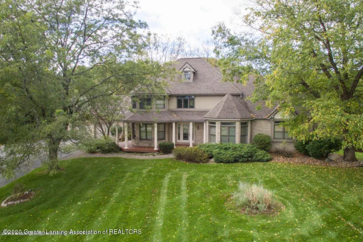Stunning home in popular Chimney Oaks Subdivision! Located on one of the prettiest 2.7-acre parcel in the development with private wooded & pond views, custom designed with charm & quality throughout! The former developers own personal home was built to perfection! Over 3,618 sq. ft. above grade. Extensive dentil and crown molding & quality features throughout this magnificently decorated home along with numerous strikingly designed windows & leaded glass transoms! Enjoy 10 ft and 12 ft ceilingson the main floor, plus special archways! The 2-story open foyer with European limestone flooring leads to a column-flanked, great room with elegantly detailed gas fireplace. French doors to the main floor den that contains many built-ins (bookshelves, drawers & cupboard) with direct & indirect lighting, bay window and pond views. Fantastic master suite, 2 walk-in closets, open tray ceiling with indirect lighting leads to an exquisite master bath with two granite-topped vanities.