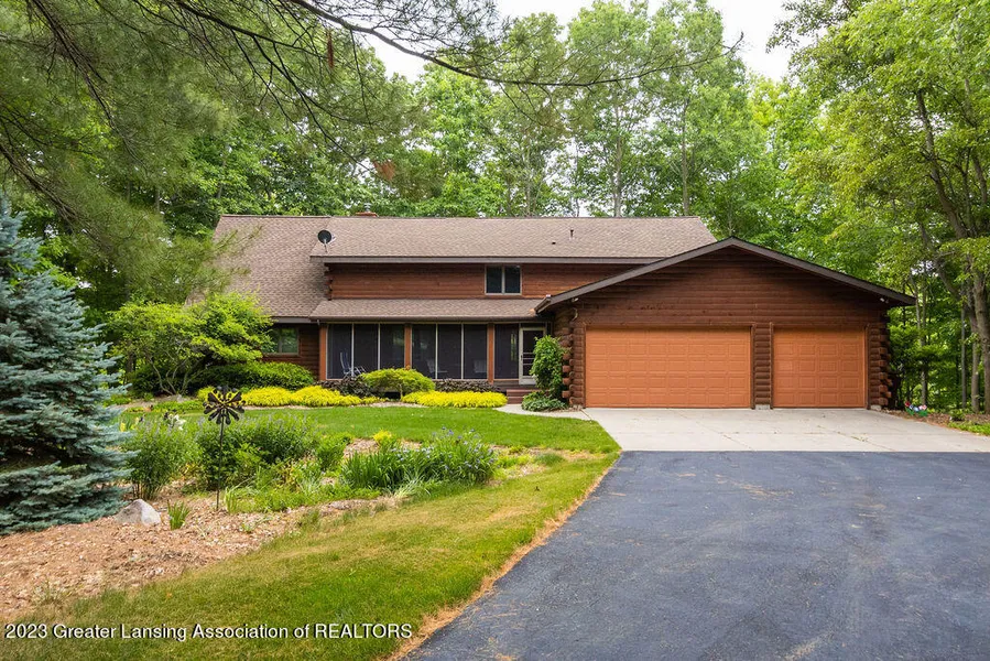 Williamston - fabulous custom built, one owner, log home. Nestled on 9.42 acres on the Red Cedar River with a 24x32 concrete floored pole barn! No expense was spared in designing and implementing this one owner, special cottage and home in one. Extensive hardwood flooring, knotty pine walls and soaring beamed ceilings add an architectural interest at every glance with floor to ceiling natural views in every direction. The special screened in front porch leads to a lovely foyer with solid panel wood doors and extensive trim. A spectacular true great room with a staircase to the second floor, a wood stove and gleaming real hardwood floors plus an adjoining dining room with access to the deck! A special solarium to grow your plants or marvel at nature. The spacious kitchen with loads of cabinets, pantry, quartz countertops and tile backsplash is efficient with a great flow. First floor laundry and access to the three-car garage. A wonderful study or possible 4th bedroom on the first floor includes access to the bath. An oversized main floor primary suite is ample in size with its own deck access. A nice walk in closet and lovely bath complete with double sinks, whirlpool tub, tiled shower plus a separate stool area. The loft is oversized with an overlook to the great room. The perfect family room, game and media space. Two oversized bedrooms with great closet space plus a full bath. Need more space? A full walkout lower level, stubbed for a bath plus large space for two more bedrooms. Room for a family room, hobby room, storage and more! Anderson windows. Closed loop geothermal approximately 6 years old. Newer shingles are approximately 2 years old. Get the real up north feeling in the quaint town of Williamston. Close to MSU, highway access, shopping, and eateries.