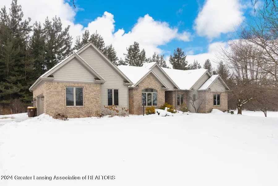 Okemos Schools! This delightful home is nestled in the popular Wellington Subdivision! Custom-built ranch situated on just over an acre parcel in a prime location in the neighborhood with eastern exposure and over 3700 sq. ft. of living space including 4 bedrooms and 3 full baths. The large open foyer has access to the great room, including floor to ceiling windows with private views of the beautiful backyard. Enjoy the lovely formal dining room with great 9 ft ceiling heights, eyebrow window and gleaming hardwood floors throughout most of the main floor living space! Freshly painted with white on white. The spacious kitchen has loads of cabinets, granite countertop space, center island, informal eating area, eating bar, tiled back splash plus access to extended living space with a 4 seasons room with wood plank cathedral ceilings and transom windows plus patio access. The deluxe primary...