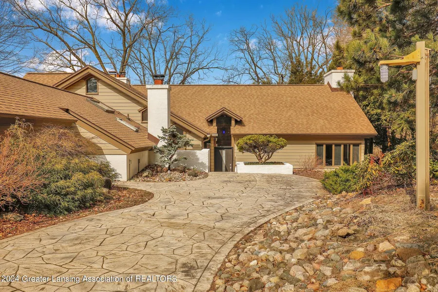 Welcome to 4609 Comanche Drive in Okemos! This mid-century modern gem was designed by Arai & Hummel architects in the 1960's. Nestled at the end of a winding road, this secluded 4-bedroom home offers a peaceful escape, surrounded by a picturesque lake and trees - all within a 5-minute commute to the MSU campus. Bask in the tranquility of nature with 500 feet of lake access complete with your private dock and boat, set against a backdrop of gardens and an array of visiting birdlife and wildlife, delivering a perfect blend of seclusion and accessibility. Step through the custom front door to discover a unique and stunning floor plan. You will be instantly drawn in by the large windows and beautiful light streaming in through the home. The north side of the first floor boasts an enhancement with the replacement of multiple windows and doors, incorporating energy-saving modifications that blend sustainability with style. The first floor features a generously sized living area with a wood burning fireplace- all open to the dining area- with a great view of the lake and yard! Circling around, you'll find the contemporary kitchen- complete with stainless steel appliances (including a sub zero fridge) and granite countertops. Off the kitchen, you'll find the main floor laundry and another sitting area with a gas fireplace and indoor grill! The three bedrooms on the first floor are serviced by two full bathrooms and a half bath for guests. The bedrooms and main floor offer generous storage solutions. One of the main floor bedrooms even has a little loft- which would be great for dividing the room into separate study/sleep areas or for siblings sharing a room. The woodwork, windows and whole vibe of the home make you feel like you are in a swiss chalet. Upstairs, you'll find the primary suite- with sliding wood doors, a walk in closet and an absolutely gorgeous fully renovated master bathroom. The tilework, soaking tub and gorgeous shower and double sink will wow you. There is even a heated floor! Another multi-purpose space upstairs is the loft to the side of the primary bedroom. Originally, the space was used by the radiologist who lived there to read x rays! Today, the built in desk and shelving is perfect for a home office. Discover the versatility of the lower level, featuring distinct zones for relaxation, storage, and convenience, including a sizable finished area and half bath. The walkout basement is a cozy haven, complete with a cast-iron stove ideal for appreciating the scenic views or hosting gatherings outdoors in the warmer months. The outdoor space has been reimagined with an array of landscaping enhancements, such as new stairs and tiered gardens, perfect for those with a green thumb. This home and property are so special- schedule your showing today!