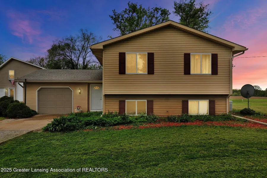 Scenic Countryside Haven: 1.48 Acres with Spacious Pole Barn and and Endless Recreational Possibilities! Nestled on a scenic 1.48-acre lot in the countryside, this charming property offers a perfect blend of comfort and convenience. The home features 3+ bedrooms and 2 full baths, with the possibility of a fourth bedroom. Upon entering, you'll be greeted by a spacious 6x6 foyer with a closet and direct access to the attached 1+ car garage, which includes a storage/work area at the back. The first floor boasts an open floor plan encompassing the kitchen, dining, and living areas. The kitchen is equipped with stainless steel appliances, including a gas range. Two generously sized bedrooms and a full bath are also located on this level. A slider off the dining room leads to the back deck and brick paver patio, providing a picturesque view of the scenic backyard. The lower level features a third bedroom, an office/craft room that could serve as a fourth bedroom, complete with a wet bar sink. Additionally, there's a spacious family room with daylight windows and a large 19x11 utility/laundry/storage area. The property is equipped with a Generac standby generator, ensuring uninterrupted power supply. Outside, you'll find a fire pit and a horseshoe pit, perfect for outdoor gatherings. The huge pole barn is a standout feature, with a 12 ft overhead door to accommodate large recreational toys, a second story loft for all your storage needs, several 220 plugs, and a second overhead door. There's also a chicken coop, with the option for the chickens to stay or go. This home offers the perfect blend of convenience and peaceful country living, making it a truly unique find in a rural setting. Act now! Schedule a viewing today and seize this incredible opportunity before it's gone!