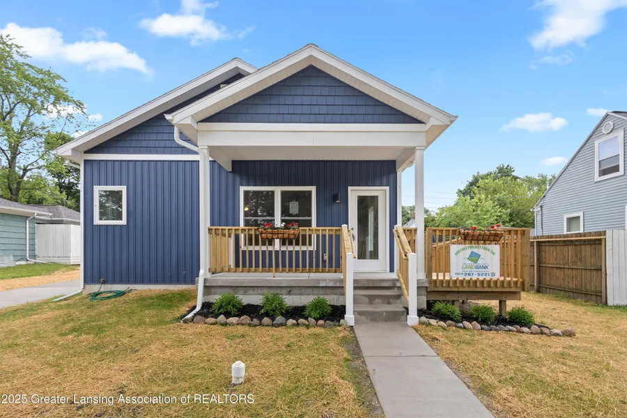 Welcome to this thoughtfully designed new construction home presented by the Ingham County Land Bank that blends modern efficiency with classic charm. Featuring 3 bds plus a dedicated office with an egress window, this flexible space could easily serve as a 4th bedroom. The heart of the home is the kitchen, which includes granite countertops, a center island, and a corner-facing sink that offers a lovely view of Quentin Park, located just across the street. This energy-conscious home includes a 200-amp electrical panel, heat pump, electric water heater, and solar panels to help reduce utility costs. You'll also find basement laundry, two full bathrooms, and plenty of storage throughout. Thoughtful details such as high ceilings, recessed lighting, low-flow toilets, and craftsman-style interior doors give the home both character and comfort. The covered front porch, accessibility ramp, two...