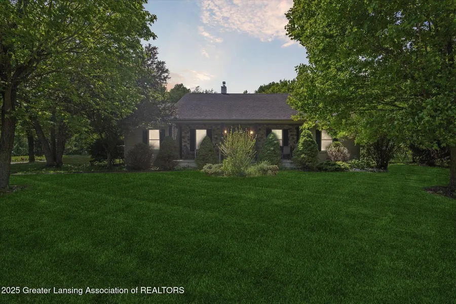 Welcome to your secluded sanctuary—nestled on just under 60 picturesque acres within the highly sought-after Williamston School District. This stunning ranch estate offers the ultimate in privacy, evoking the peacefulness of northern Michigan while still being close to everyday conveniences. As you enter the property, you're immediately embraced by serene views, a scenic pond, and a custom firepit area—ideal for entertaining guests under the stars. Outdoor enthusiasts will appreciate the abundant wildlife, visible from the comfort of your expansive covered front porch. The home itself features soaring cathedral ceilings in the great room, creating an airy and inviting space to relax or host family gatherings. Just beyond, the updated kitchen is a chef's delight, complete with modern appliances, a center island, and open sightlines to your private acreage. Function meets comfort with a de...