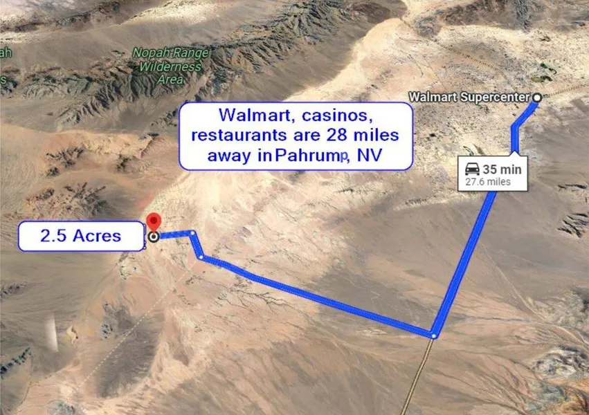 just 55 miles to Las Vegas, 23 miles to Tecopa Hot Springs, 95 miles to Death Valley National Park and 27 miles to Pahrump, NV, for nightlife, casinos and winery, Walmart, banking, and other services.