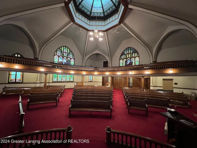 Remarks: Beautifully constructed historical place of worship. Two and a half exquisite floors. Incredible workmanship from trim, to corbels, pews and Sanctuary. Incredible stained glass. Awesome peaceful aura. Flexible spaces. Two kitchens. Many social areas. Sweet charming chapel. Wing of classrooms or potential offices. Elevator recently inspected. Perfect for a new congregation, event center, community center or... Will need a bit of TLC in some areas. Bats in the belfry. Survey competed. Elevator license recently renewed. Kitchen certified previously. Square footage is estimated. All items currently in the church will remain. Unbelievable value.