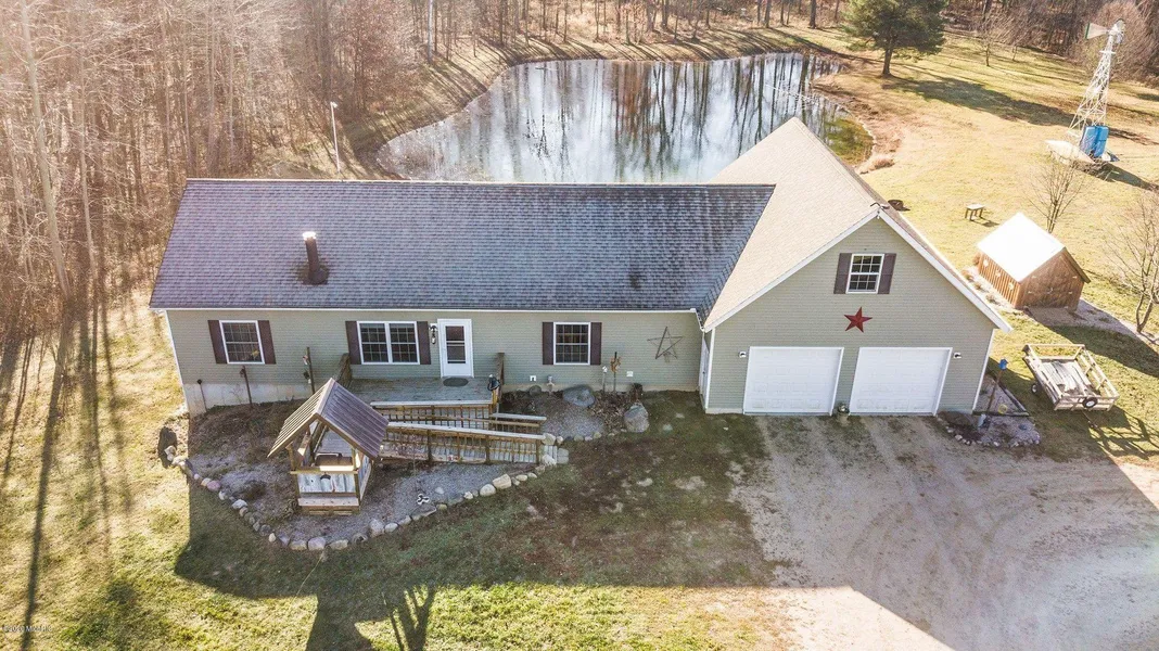 Outdoorsman's dream. This home features it all, 15 beautiful acres 10 which are wooded. Outback your home over look's a spring fed pond in a gorgeous setting with an abundance of wildlife. Pond is stocked with bluegill, bass and perch. Windmill aerate the pond. Seller has a wide assortment of newly planted trees throughout the property, pines, maples, flowering and fruit. Luxury deer blind and hobby farm enclosures included. Inside the home you will find an open floor plan, large kitchen, cozy living room with wood burning fire place. Home has 4 bedrooms and 2 full baths. Walkout basement has been partially finished and is ready for you to make your own. Hurry to schedule your private showing today. This rare find won't last long.