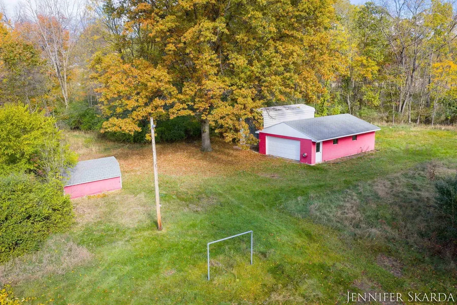 BEAUTIFUL GEM - This beautifully wooded 4.25 acres are a true rarity: Ionia taxes, Lowell Schools, 24x36 garage, RV carport, shed, existing well. This property used to have a home on it but it burned down last December. The remains have since been removed including the electrical line & septic tanks as required by insurance. The 105' well & well pump remain. The garage is 24x36 with a newer garage door, a cement floor, & 2 service doors. There are plenty of electrical outlets & water in here. (Electric & water line need re-connect.). There is also a hard-wired propane heater in the garage & a separate storage shed. The 14x30 RV carport is very sturdy with 12' high sides & a packed limestone gravel floor. It's newer & in great shape! Perfect for your RV. The property has a cleared area to build again if desired. Beautiful mature trees adorn the acreage & the deer love it here! Plenty of scrapes & rubs. There are a couple of fruit trees they love to snack on. Plenty of surrounding State Land for your enjoyment. Fallasburg Park & Fallasburg Covered Bridge are less than a mile away. What a beautiful & serene place to enjoy. Take a walk, picnic, launch your kayak, play at one of the parks, go fishing, & more! The famous covered bridge is a beautiful backdrop for special photo opps too! Seller has delayed review of offers until Monday, 10/27/25 after 12pm. Please schedule an appointment to walk the property. Please do not walk this property alone or without permission. There is a video / virtual tour attached to the listing for a preview of the property.