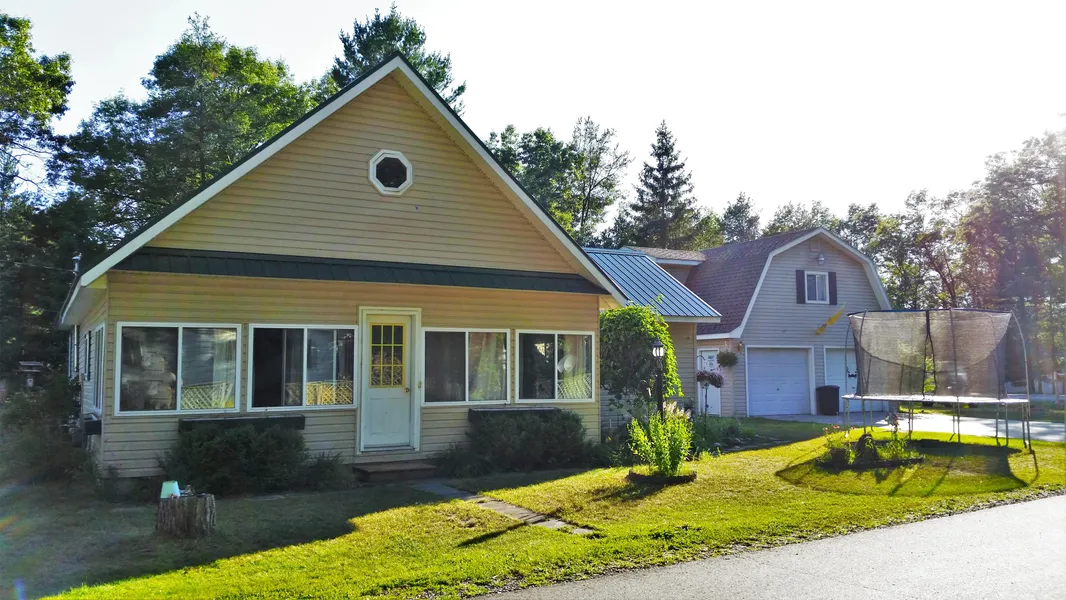 Comfortable Lake Access living is easy in this quaint year-round or seasonal residence. Remodeled in 2001 for a more modern appeal, this home includes an outside access partial basement, underground sprinkler system, magnificent storage, built-in surround sound and cathedral ceiling in living area, kitchen island with bar and working garbage disposal, laundry closet with gas/electric hookup off dining room, extra gas hookup in master (awaiting a fireplace addition), wired for emergency generator hookup, a spacious sunroom, and BONUS loft area (currently utilized as a bedroom). All of this on two lots with a roomy 2 car garage that includes Separate Guest Quarters that provides its own A/C unit, septic, furnace, and gas meter. Sellers are including engaging bonuses of an air hockey table, ping pong table, and Skeeball!! All of this within walking distance of Sand Lake and ATV/snowmobile t...