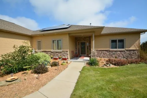 Located only 30 minutes from Madison ,WI in the rough hill country of Southwest Wisconsin is this executive Prairie Style ranch home on 19 acres of wooded beauty. This acreage has rock outcroppings, deer, turkey, small game and numerous song birds. The Pecatonica River that is home to smallmouth bass and walleye is only a couple of miles as well as numerous class A trout streams. This home features oak flooring, solid 1/4 sawn oak cabinets,custom built-in closets and storage + built-in media center, head board cabinet with TV, security, solar heat, 4 car garage and much more. 48043-28013