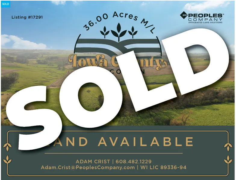 Peoples Company is honored to present this 36 acre beautiful executive building site, less than a mile off Highway 151, with fantastic views of the rolling Iowa County, Wisconsin, driftless countryside. It is nestled away from the main road, providing ample seclusion and privacy. The land offers impressive views of the Driftless Area with multiple building site locations, tranquility, and pasture ground with room for livestock.