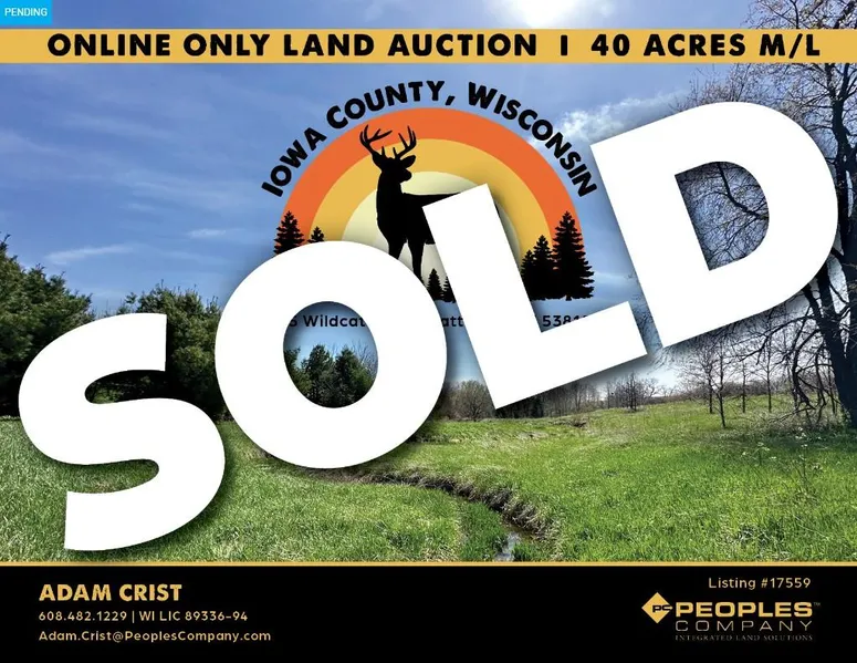 Iowa County, Wisconsin Online Only Land Auction - Bidding is live and will conclude Thursday, June 20th, 2024, at 5:00 P.M. CST! Peoples Company is pleased to present an online-only land auction for a beautiful 40-acre executive building site located in Iowa County, Wisconsin. With stunning views of the Driftless Area, multiple building sites, hunting opportunities, and pasture ground, this property has it all. Plus, 19.26 acres are enrolled in the Conservation Reserve Program (CRP), which generates a yearly payment of $3,023. The CRP contracts expire in 2027 and 2030.