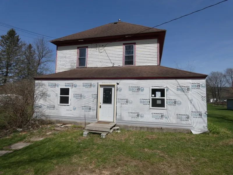 Edge of town with over 1.5 acres. This farmhouse offers great opportunity for the motivated buyer to finish remodeling and updates. Main floor has kitchen, large living room, full bath, bedroom and laundry plus the porch area on two sides is enclosed and ready to finish. Upstairs has three bedrooms and another full bath. Several buildings including a 3 car detached garage, garden sheds, additional older garage, etc. Year built is estimate as assessor file does not provide. Property is sold in as-is condition and, due to incomplete projects, will not qualify for many financing programs. Call for a closer look at the potential at this rural property.