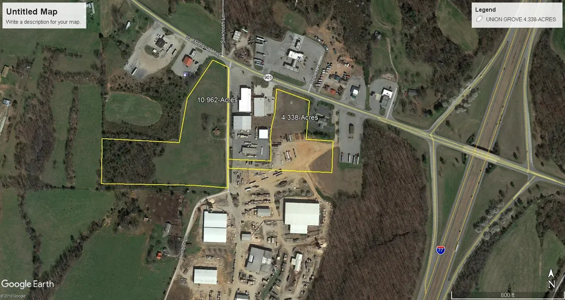 A unique 10+acre parcel of land located just off of I-77 in Union Grove, NC. This property has over 100' of road frontage on NC Highway 901 and only 1,500' from the I-77 ramp at Exit 65 in Union Grove! Also, it has over 800' of paved road frontage on Lumber Drive. There are over 6.5-acres of cleared land with additional area for a sewage system. North Carolina Department of Transportation shows traffic count to be 7,700 vehicles per day during 2016. This property is zoned RA (rural agricultural) and will need to be rezoned for a business. Adjacent to Ace Hardware. Only 12-minutes north of Statesville and I-40.