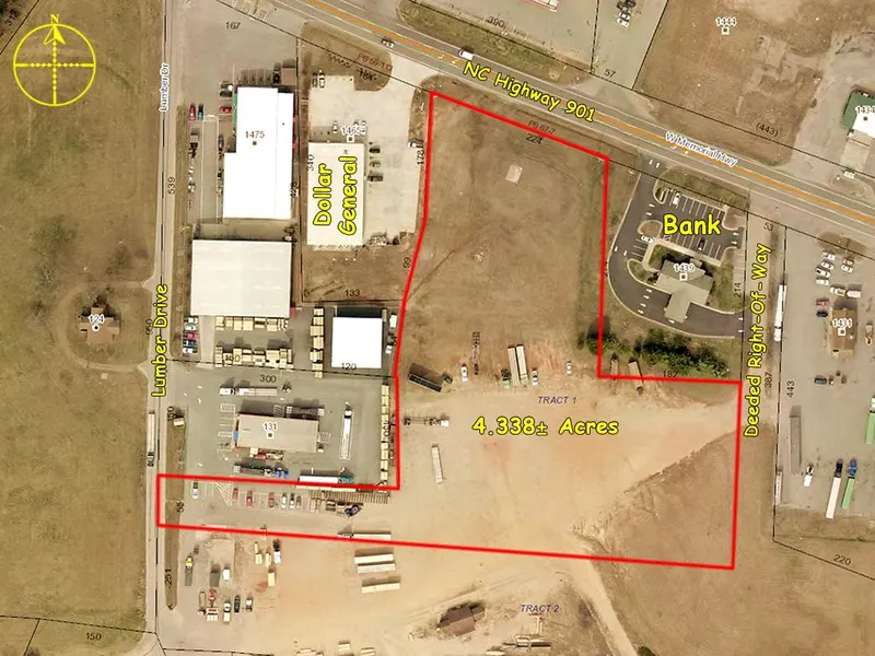 4.338 Acres with frontage on NC Hwy 901 "Memorial Highway", just off Exit 65 on I-77. This commercial lot is zoned GB, except a narrow strip in the SW portion. It is level, and has legal access on two additional sides beside the highway frontage, making it a great lot for any business requiring easy in/out vehicle traffic without having to turn around. Adjoining businesses include a Capital Bank to the East along the highway, Dollar General to the West, and a lumber business at the rear. This commercial lot is located West only about 1,000 feet off I-77, and about a 12-min drive to I-40 in Statesville. This lot is virtually level throughout, so little grading would be needed. Electric, Phone, internet, and water utilities are found at the road. Septic needed. Prospective buyers will need to verify with the county planning and zoning office for permissible uses based on current zoning classifications. Refer to recorded Plat 67-7 for more details, including reference to a septic easement on the property in favor of the bank. Co-Listed with Carolina's Land, Inc.
