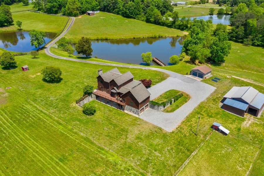 Drive around the corner & behold this rolling vista view of the large pond, pastures, large hillside behind the farmhouse sitting on the knoll overlooking this same scene. Imagine the farm animals grazing, the ducks swimming & chickens clucking in their free range yard. Nature at its' best just waiting to be full filled. Barns & Shelters for the farm animals of choice. All of this without giving up the multiple garages & storage/vehicle buildings. Enjoy the serenity & beauty of this property from either the wrap around front porch or back deck. Move-in ready home w/extensive wood work, updated & upgraded kitchen w/SS appliances & breakfast room, large laundry, finished basement w/a full bath, laundry hook-up and beginnings of the kitchen just needing the appliances. Large 2nd floor master suite w/2 closets, master bath with large corner whirlpool & 2 granite top vanities & separate shower. Property borders a creek and small mountainside. Rumor has it you can trail ride to Love Valley.