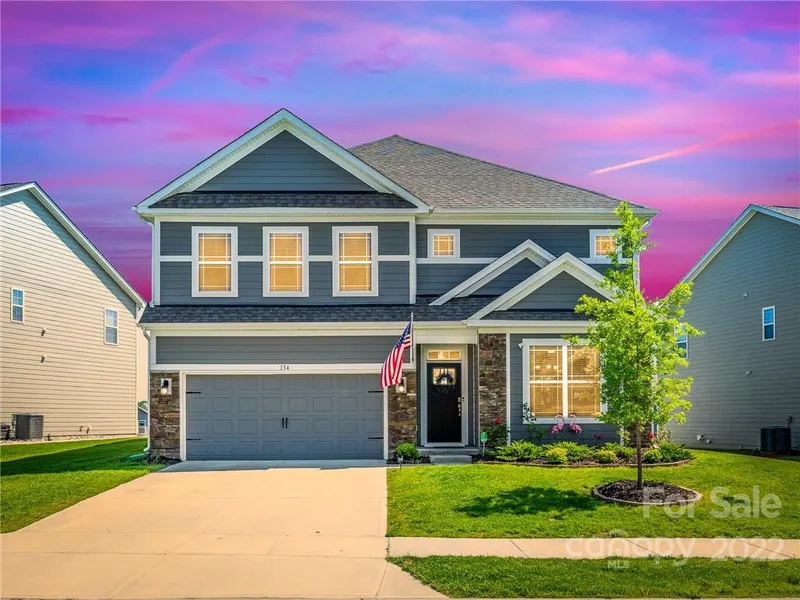 Beautiful like-new 5 bedroom 4 bath home w/ community access to Lake Norman. Welcoming & spacious with lots of natural light and airy open floor plan. You will not want for space in this well laid out home. It also features the sought out additional bedroom down w/ adjacent full bath. Pretty white & gray kitchen w/glass front cabinets, granite, double ovens & walk in pantry. You will most certainly enjoy the gorgeous NC weather from the deck & the amazing extended patio w/ fire pit. Make your way upstairs to find the owners suite w/ tray ceiling & large bathroom featuring glass shower, garden tub & huge WIC. Owners suite has nice privacy as 3 other bedrooms are down the hall along with 2 full baths. Established landscaping to include small raised garden & fruit trees. Community pool & playground just a short walk away. Washer and dryer convey to buyer as gifts.