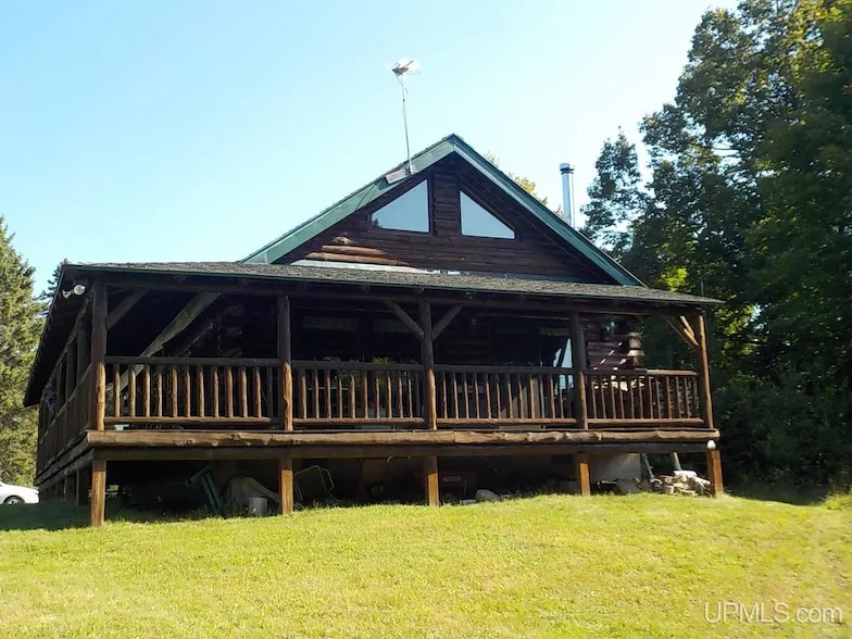 Escape to this charming log home on 10 rolling acres, just 2 miles from the Michigamme Flowage! Quiet private setting yet just 15 minutes to town. Rustic and cozy, this property features a main floor bedroom and full bath, with a spacious wrap-around deck. Capture the Northern Lights or soak in the fall foliage right from the comfort of the log porch swing. Inside, you'll find authentic log and wood craftsmanship throughout, including a beautifully exposed five rooted central support beam. The log staircase leads to a spacious 10x15 loft for additional sleeping space. Outside you'll find a convenient carport near the cabin for covered parking plus there is a 18x23 log barn with a dirt floor for storage. Systems include a Carrier 9200 forced air furnace, a point well and a full septic. Home is being sold furnished and ready for you to enjoy. This true Northwoods retreat or year round log ...