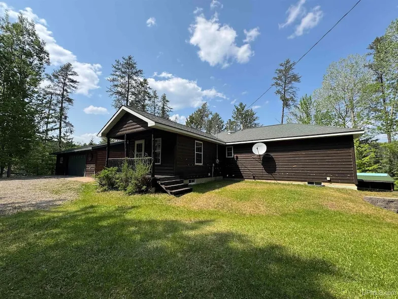 Charming and cozy, this 2-bedroom, 1.5-bathroom cottage-style home offers the perfect blend of rustic appeal and modern comfort. Situated on 2.70 acres right outside of town, this log-sided home offers serene views of Runkle Lake and the charm of a peaceful, up-north retreat. Inside, the open-concept kitchen and dining area is perfect for entertaining, with warm wood finishes throughout that add to the inviting cottage character while still maintaining a modern touch.. The partially finished basement expands your living space with a family room, 3/4 bathroom, and an additional bedroom. Step outside to enjoy the spacious patio area perfect for summer gatherings or quiet evenings. The property also includes a detached 2-car garage and a wood shed, offering both convenience and storage. A true escape with all the benefits of nearby amenities! Schedule your showing today!