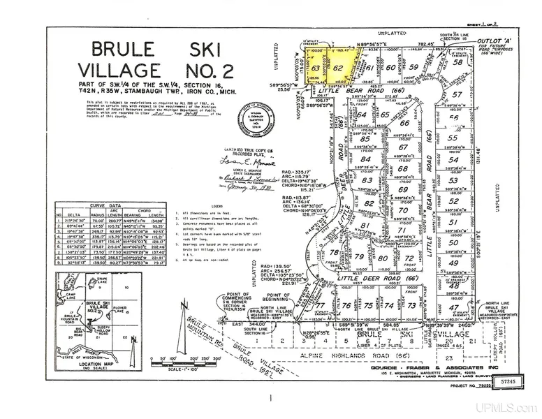 What a great opportunity to purchase Lot 62 and 63 within the Ski Brule Village in the Upper Peninsula of Michigan. Lot 62 and 63 are located within the Plat of Ski Brule in a nicely wooded, private area on Little Bear Rd. There are no visible neighbors and if you decide to build a year round or seasonal home on Little Bear Rd. the County of Iron maintains the road. The Lots are within minutes of the Resort where you can enjoy Downhill, Cross Country Skiing and Tubing. The Lodge offers dining and cocktails, cafeteria for lunch, shopping in the Bear's Den for your favorite ski equipment and clothing. If you are interested in building and using your cabin or home to generate income the rentals within the village are an excellent source to offset your investment in the Summer and Winter. The Lots are very close to Stanley, Camp, Bass and Hagerman Lakes. The lakes are ideal for all water act...
