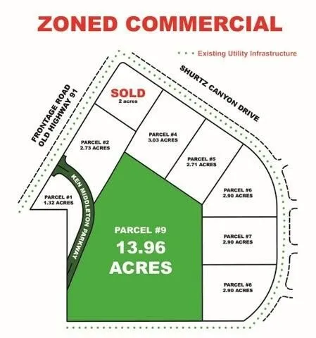 Bring your big box business to Cedar City! Looking for the perfect spot to develop your next business or investment property? This large 13.96 commercial acreage is located in a prime, high-traffic area and comes with utility infrastructure in place, making it the ideal property to bring your vision to life! Located of Ceder Cities South Interchange, off Hwy 91 and the new Ken Middleton Parkway.