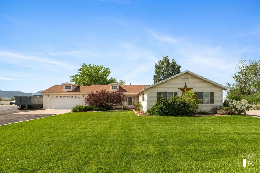 This beautiful home on 5 Acres with an amazing view of the mountains and valley. Oversized 2 Car Garage and an asphalted detached Barn/RV Garage with 38x40 full power, 220 power. 2 Stall metal shed , 4 Stall run in barn with roll up doors. Riding arena and horse pasture in backyard. Home has a large family room with sliding glass doors. Large living room has a gas fireplace. There is a brand new water heater and the home heats and cools very well. Separate fenced yards between 3 & 4 acres of pasture. Outside also features a greenhouse and a covered porch. Everything outside is to be included.
