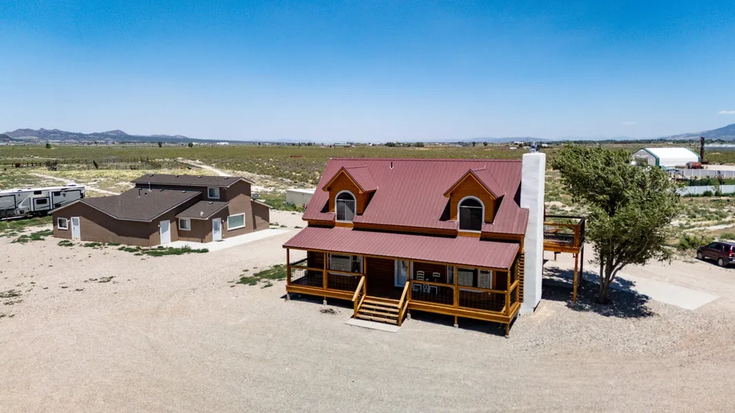 Charming log cabin retreat on nearly 20 acres! This unique property features two custom homes and full hobby farm infrastructure. The 2,511 sq ft primary log home offers 4 beds, 3 baths, and a 2-car carport. The 2,400 sq ft barn-style second residence includes 2 beds, 2 baths, a loft, attached 1-car garage, plus a 14' x 9' gym, 10' x 20' storage room, and 14' x 15' office. Property is equipped with two propane tanks, eight water spigots, RV pad with full hook-up and dump station, three 100' x 50' corrals (7 ft high), a chicken coop, and a 20' x 30' fenced garden. Perfect for homesteading, multi-generational living, or hosting. Arena, bucking shoot, cattle panels, two Conex containers, along with the stove and refrigerator in 2nd home are excluded from sale. Rare opportunity—call today!