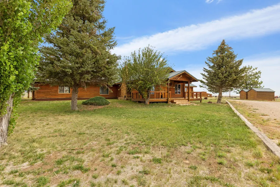 This horse facility offers privacy, unobstructed mountain views, and reliable water access. The property includes a spacious log home, mature trees, and a well-maintained layout designed for ease of use and safety. Improvements include all pipe fencing, solid gates, and a practical setup for managing horses and livestock. The barn features three tack rooms, two concrete saddling areas, a front-side concrete wash pad, and direct access to a 60' solid-walled round pen and a 180' x 385' arena with quality sand footing. Each of the horse and cattle pens is equipped with frost-free spigots and electrical service for year-round functionality. Additional features include a large shop with concrete floors, 220V power, an adjacent Conex container, and multiple storage buildings throughout the property. Water access supports both residential and operational needs. *All information deemed reliable but not guaranteed. Buyer to verify all.