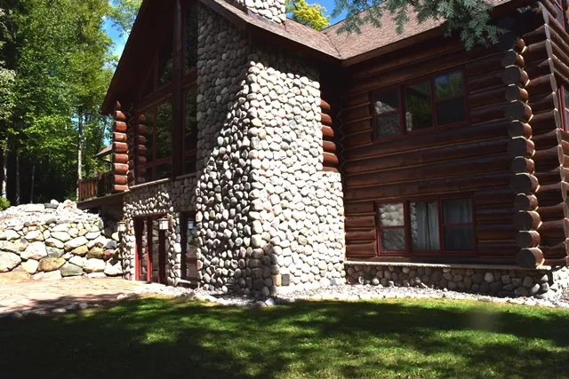 Completely private lake with acreage & newer log home! Lake is 60 ft. deep w/crystal clear water, surrounded by nearly 200 acres of 70 year old mixed forest. Gated entry, private driveway, and very private setting. Home constructed of massive sized logs, along with interior log accents, vaulted ceilings, loft, 2 natural fieldstone fireplaces, granite countertops, Viking range/Subzero refrig., butcher block island, open concept kitchen/dining/sunken living room all having hardwood floors. Master suite with walk-in closet, large bath with tile shower. Other features include sauna, screened porch, lakeside deck, landscaped front patio area with gradual slope to lake. Permanent pier, detached garage. Internet Available!