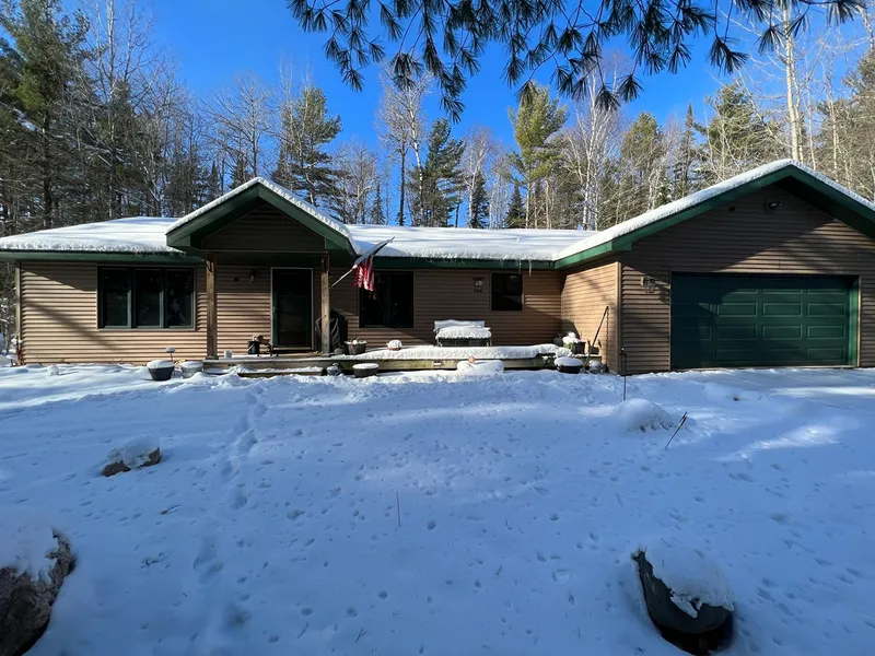 Very desirable location! This private home boasts 1.53 wooded acres near Trude Lk, Wilson Lk & the Turtle Flambeau Flowage! Inside youll find a favorable floorplan with a popular open concept living, dining & kitchen area featuring new granite counter tops, Maytag appliances & freestanding cozy gas fireplace. Large master bedroom complete with glass patio door leading to the new cedar lined 3 season rm, lg closet & spacious MBa. Guest bedrm, 2nd bath & laundry room with sink complete the main level. Partially finished basement screams for fun with friends in the large bar/family room which includes all the neon beer signs, juke box, dart board & pool table! 3rd bathroom has jacuzzi tub, lavatory & awaits your finishing touch. Exterior of the home offers low maintenance vinyl siding, insulated/sheeted 24x22 garage, sun deck, covered entry, blacktop drive, landscaping & firepit area. Adjoi...