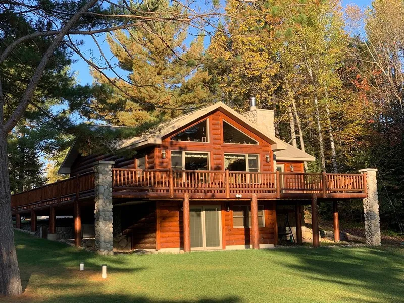 This dynamite lake property far exceeds the meaning of custom, and even more so now with a large list of impressive improvements to make the property even more outstanding! Each impressive building is neatly wrapped in 8” hand hewn log siding accented with beautiful stone work & remarkable pillars! Incredible 40x80 completely finished extraordinary custom-built garage complete with its own septic & well, in-floor heating, cath. ceiling, the most amazing bar w/FP, custom cabinetry, full bath & so much more! Addn’l finished 2-car gar, a matching covered wood boiler building & lakeside sauna w/storage house. The home features custom-built alder cabinetry, stunning cathedral great room with massive fireplace, main floor laundry, walk out finished LL with wet bar, family rm, stunning office, full wrap around deck w/log railing, fully automatic generator & central air. All on an incredible 2+ ...