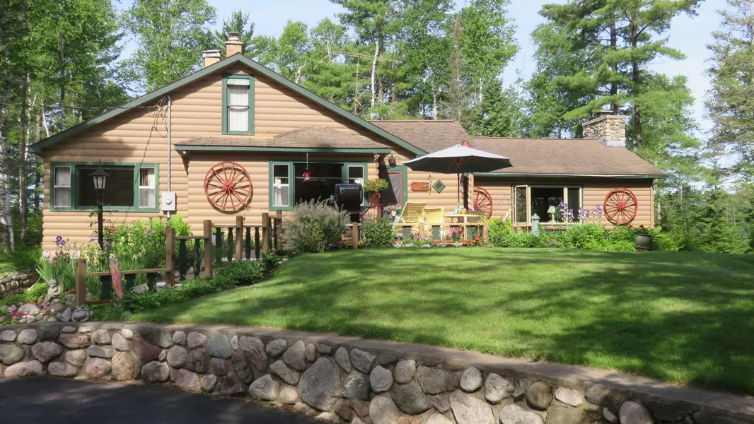 Complete privacy on high demand Spider Lake! White Winds Estate boasts over 1000 feet gorgeous sand frontage & over 6 private wooded acres! The landscaping is fabulous with perennial gardens offering gorgeous colors & wonderful walkways around the home & down to the lakefront. 3 bedroom, 2 bath home features living room with wood burning split granite fireplace, wood accented beams on ceiling, built in wet bar, is open to the dining room with wood floors & collector chandelier! Kitchen has wood floors, pine cabinetry, double stainless ovens and antique stove in brick showcase setting! Huge family room area just off the dining room has massive stone wood burning fireplace & knotty pine walls. Main floor master bedroom has his/her closets, private bath and tons of lakeside windows. 2 more bedrooms and full bath offer plenty of room for family & friends. Storage no problem with 2 car garag...