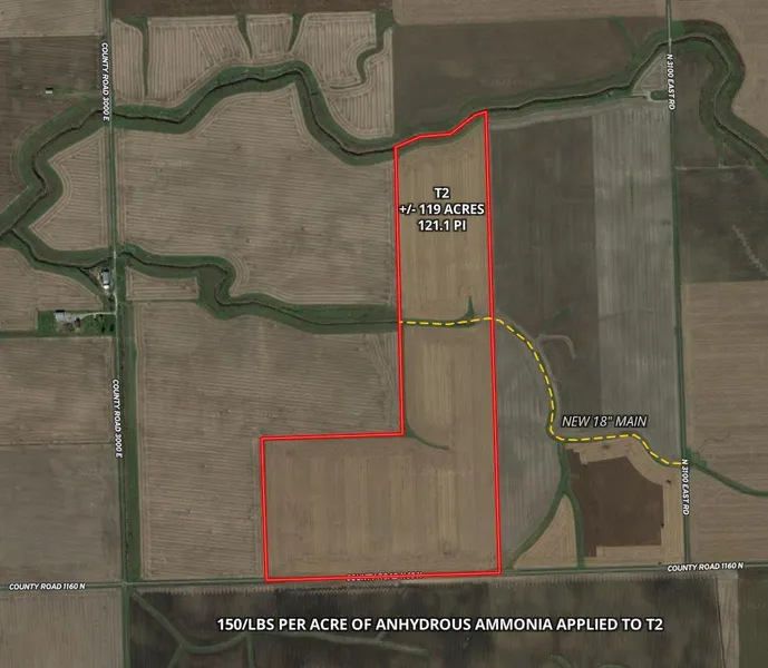 150 lbs/acre of Anhydrous Ammonia applied to +/- 115.5 tillable acres on T2.