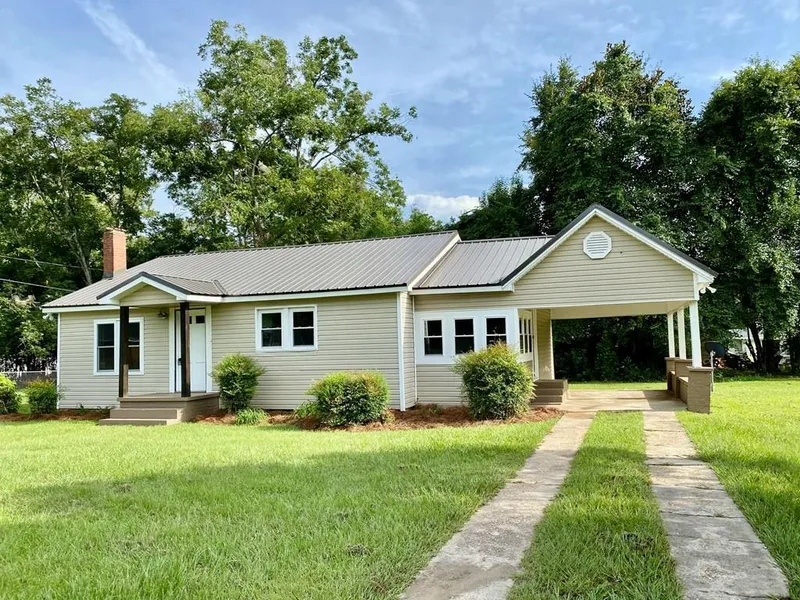 This charming home has recently been remodeled with luxury vinyl plank, new vanities, new windows, and paint through out. As you enter the home you step into the living room with wood burning fireplace. The kitchen is right off of the living room with plenty of cabinets, solid surface countertops, and large eat at island and dining with tons of natural light. The home has 2 bedrooms and 2 full bathrooms. The master has private master bath with stand up shower and single vanity. The other bathroom has tub/shower combo with tile surround and tile flooring. This home is low maintenance with vinyl siding and metal roof that is approximately 1 year old. Totally redone so you can move right in!