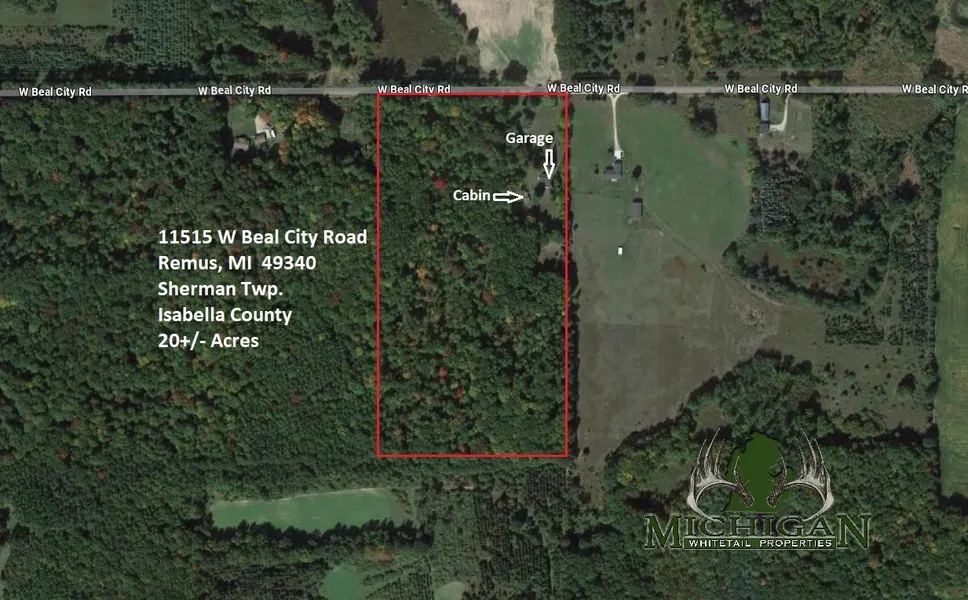 Have you been searching for that perfect small recreational parcel with amenities and improvements already in place!?! If so, this property has everything you have been looking for and is not just your standard vacant piece of land! Located near the NW Isabella & Mecosta County line, sits this wooded 20 acres with lots of upgrades. With direct access off of Beal City Road, you make your way to the NE corner of the property and arrive at the 24x30 garage with power, concrete floors, and overhead door. The next structure is the cabin that consists of a 12x20 storage shed that was converted into the original part of the cabin and then a large 18x18 addition was added on that has power, insulated and finished off to provide even more room. There is also a 12x16 steel storage shed with overhead door, concrete floor, and power located right next to it. There is a submersible water well located near the cabin that is used during the summer months, but does not currently run into the cabin.