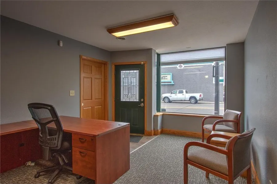 For Lease: Charming Downtown Cambridge Office on Main Street! 123 Main St N features a private office with a separate room for another employee or storage, a welcoming storefront with a large display window and existing signage for excellent visibility. The interior includes a shared ADA-compliant restroom, a private front entrance, and a rear exit for convenient access. The property also offers five parking spaces in a shared lot accessible from the alley. Recent improvements include new carpet and tile flooring, fresh paint, a fully renovated ADA bathroom, six-panel wood doors, and a new furnace and A/C. Offered at $950/month (Gross Lease) — tenants are only responsible for telephone/internet expenses, janitorial, and garbage. Available now and furnished — move-in ready!