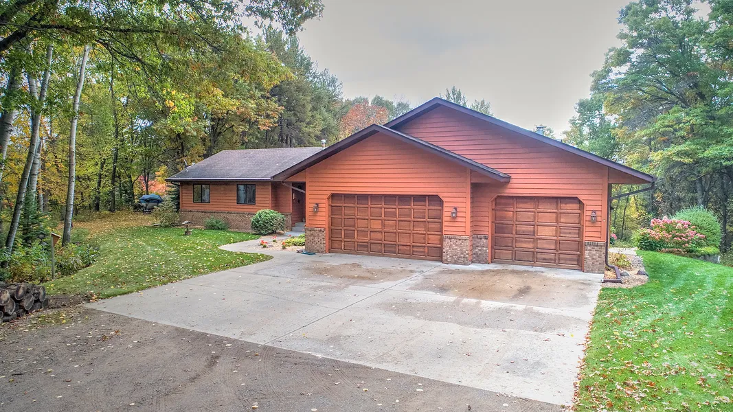 Custom built walkout rambler on almost 15 beautiful acres. Tucked into trees is this one owner 3 Bedroom, 2 Bath 3000+ square foot home that is well laid out with great views of the private backyard. As you pull into the drive you are greeted by solid cedar garage doors. The main floor boasts tiled floors, 3 bedrooms all on one level, an office, Master suite, Living room with wood stove and a beautiful knotty cedar sunroom. The huge Lower Level family room offers lots of space for entertaining or large gatherings. The 29x23 unfinished bonus room in Lower Level can be easily finished for additional square footage or a future bedroom. The 15 wooded acres offer 4 ponds, trails and lots of wildlife. This home is a must see!
