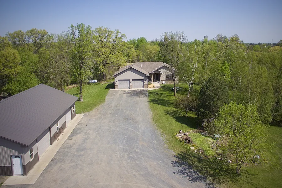 Contractors own custom built walk-out rambler, Beautiful Private setting on 20.83 acres with numerous ponds, woods, tillable acreage. Large walk-out rambler custom built with large kitchen, center island, granite counters. Dining room, Living room, large Family Room with gas fireplace. Main floor Master, 2nd Bedroom and laundry. Walk-out lower level has 3 bedrooms, (one is used as a large craft room). Office could be 6th bedroom. Nice 36x54 Pole building with 36x24 heated shop with work bench. 2 dog kennels.