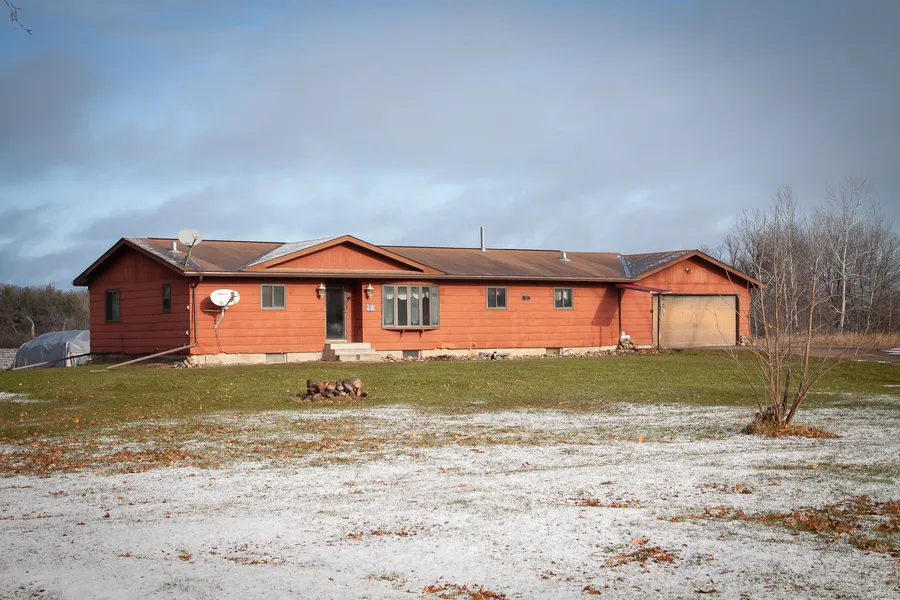 A Serene and Peaceful setting is what you will find at this 3 bedroom, 2 bath ranch style home on 10 acres located just North of Braham. Abundant Wildlife including deer, turkeys, bear and even bald eagles! Great setting for gardens, horses, etc... as there are 2 water hydrants in yard for easy watering access. Home has 2470 square feet finished with 3 bedrooms on the main level as well as main floor laundry. Master Bedroom suite has a private full bath including separate tub and shower, double sinks and a walk in master bedroom closet. Full basement that is partially finished and has in-floor heat that is heated by the Outdoor Wood Stove. 2 car attached garage has a heat exchanger so can also be heated by the wood stove if desired. Home needs some updating but this is the perfect opportunity to renovate a home with good bones and make it your own!