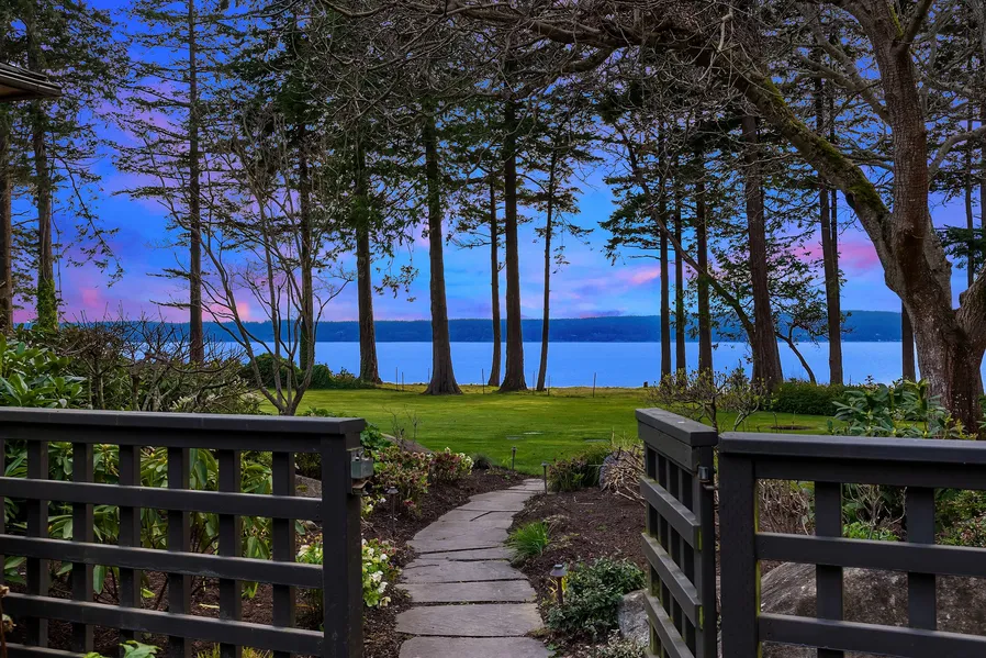 Retreat living without the ferry wait, this stunning custom waterfront estate offers rare 200 feet of breathtaking water-frontage. Meandering private driveway leads to this west facing home with breathtaking views over Saratoga Passage. Enjoy soaring eagles above, while the whales swim under the backdrop of the snow-capped Olympics Mountains and jaw dropping sunsets. Upon entrance be inspired by main-level living spaces, a Chef's Kitchen, and huge rec/flex space. Exceptional covered outdoor living space with fireplace coupled with expansive deck for late night entertaining. Guests will enjoy the original cabin with kitchen and 3/4 bath. PLUS 1,260 square foot heated shop. Beach and boat launch within walking distance. Be the first to experience this PRIVATE estate.