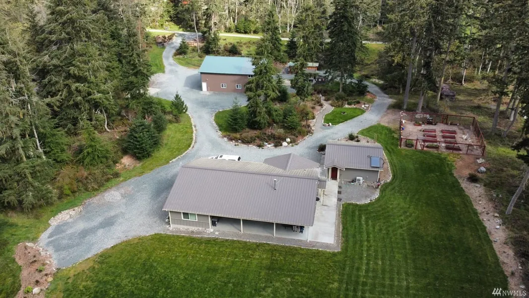 Spectacular Country Escape - Naturally landscaped 5-acre property with 1784 sq-ft Cascade Custom Home, 380 sq-ft covered patio, 576 sq-ft garage, 2016 sq-ft shop w/bedroom, bath, & kitchenette. She shed, fenced garden, RV pad & nature trails. Energy efficient age-in-place home features in-floor radiant heat vaulted great room, chefs kitchen, extra-large primary suite w/den/sitting area & luxurious bath w/air tub & walk in closet w/large safe. Private second bedroom by bath & laundry room. Patio overlooks forested back yard w/nature trails. Adjacent garage w/storage & mechanical room. Shop includes two 12 ft and one 16 ft electric roll doors, work benches, storage, and wood stove. RV pad has full hookup w/dump.