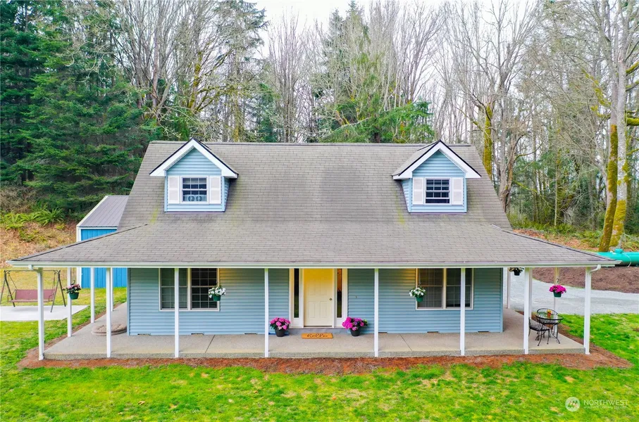 This Private and Peaceful South Camano home sits on a 5-acre property with a 30x48 Shop and a Pond. It has 3 bedrooms, 3 baths, plus a dedicated office with an exterior entrance. The kitchen is newly remodeled. There's a covered wraparound porch, perfect for outdoor dining and entertaining. The property includes a detached shop with plumbing and electricity. With the 4-bed septic, it could possibly be an ADU, workshop, or rental property. The home's 3 bedrooms have nice views and plenty of natural light. Renovated bathrooms. With new LVP flooring on the lower level, this move-in ready property offers a serene retreat with modern amenities and potential for expansion.