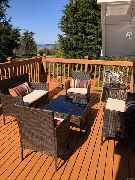 Admiral Bay Beauty! Active vacation rental ready to be taken over w/Aug booked for instant income, use parttime or full-time rental as investment or just home! 1 bedroom on main level, Primary on 3rd level with 3/4 bathroom. Not your cookie cutter home, vaulted ceiling. large beams w/plenty of natural light. Dinning & Kitchen has plenty of space w/unique built ins. Hardwood floors on main level, relax on back deck w/view of water & Ferry landing, enjoys those Westbeach sunsets. Lower level is spacious with 3 extra room + closets, Large Great room w/mini kitchen area, go outside & relax on patio w/ jacuzzi tub, fenced large backyard, fire pit, private Zen Garden w/amazing flowers. Most furnishings stay, has large shop w/loft & storage bins.