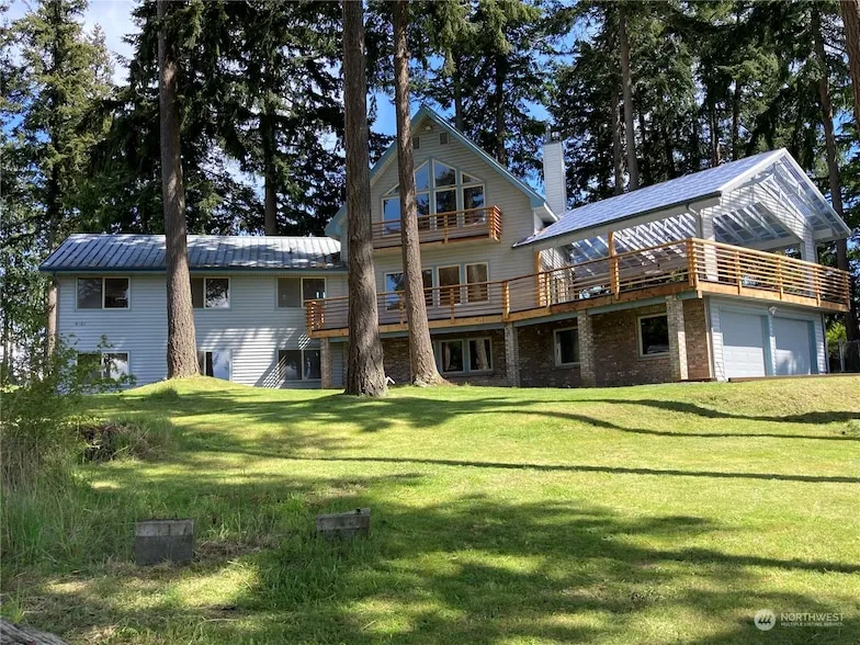 View View View Acreage !! 3 acres quiet and private setting on what feels like the top of the Island, 450 feet altitude. Catch your breath with stunning east and west water views from the Cascades to Olympic Mountains with spectacular sunrise and sunsets, plus shipping lanes, and the night lights of the mainland. Covered Trex deck is perfect for dining al fresco. Not to mention soaking in the indoor mini pool after a hard day of play. A very rare opportunity to own a very rare property. *All furniture virtually staged.