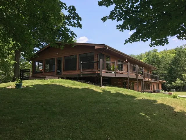 This 4 bedroom, 2 bath home is very spacious, well built, and sits on a prime, 6+/- acre lot with gradual elevation to firm, 250' of sand shoreline. The home includes many great features such as an 8'x32' 3-season porch, wrap around deck, additional canning kitchen, wood work from various native trees like maple, oak, and bass wood, as-well-as an attached-heated 27'x32' garage. The yard flows gradually to the lake and you'll love feel of nature with deer, ducks, birds, and other various wild life. For additional storage, there is a 30'x40' Morton building. Deer Lake is a premier lake with pristine, clear waters. It has many islands and is over 4000 acres. Deer Lake offers great fishing for small mouth bass, walleye, and muskie. Here's your chance to own an amazing property!