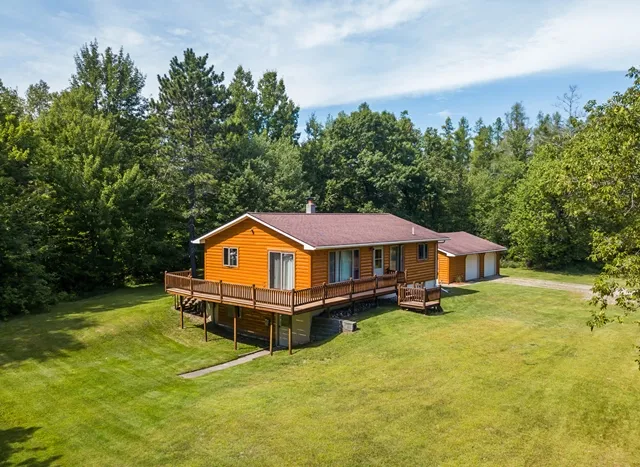 4 bedroom, 2 bath home on 5 wooded acres. Home & garage have new roof, siding and windows within the last 5 years. Features include full walk-out basement, wrap around deck, and new carpet in bedrooms and living room. Spacious, picturesque yard includes detached 2+ car garage, shed, wood shed, and located near many acres of public land.