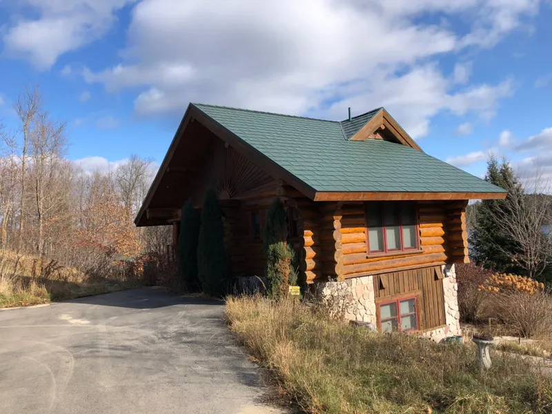 Gorgeous split log home on crystal clear Amen Lake. Located on almost 4 acres & 400+ ft. of shoreline this property promises privacy & unique artistic touches throughout. Stunning stone fireplace in living room & a wood burning stove in lower level ensure warmth & coziness. Sun room overlooks lake & is adjacent to large deck with glass panel siding. Small loft is positioned in towering vaulted ceilings, above built in book cases & compact kitchen. 3 bdrms., 2 full baths, attractive family room, mechanics/laundry room complete the interior. Highly respected local log builder, Tim Magni created this exceptional home. 3 bay detached garage features a bonus area above. Included are a great open room, beautifully tiled 3/4's bath, amazing storage, mini split ac, & small kitchen area skylights.Garage has in floor heat, insulation,tremendous shelving & cupboards. Home benefits from dual fuel, i...