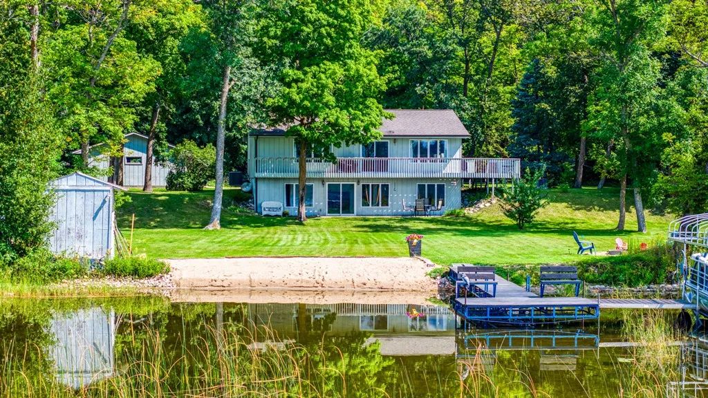 Welcome to your dream lake home! This charming property offers 3 spacious bedrooms and 2 beautifully updated bathrooms, including a full bath with a jetted tub and stunning tile work. Enjoy a brand-new, fully remodeled bathroom on the lower level. The walkout basement leads you to a sprawling 1.9-acre lot with 370 feet of pristine, hard sandy lake shore and a fantastic beach. Relish panoramic west-facing views that promise breathtaking sunsets every evening. The home features original birch flooring throughout and has been thoughtfully updated to enhance comfort and style. With 4-stall garage space, including 2 detached garages, you'll have ample room for storage and hobbies. Additional highlights include a garden space, a boathouse, multiple heat sources, and central air. Located just 10 minutes from town, this property combines tranquil lake living with convenient access to local ameni...