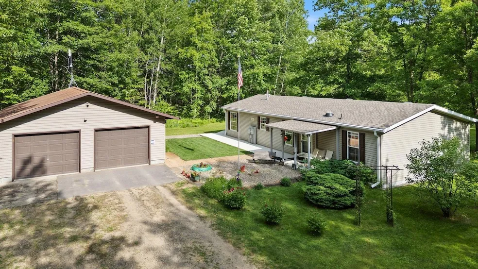 Set on 3.5 acres just minutes from Grand Rapids, this 3-bed, 2-bath manufactured home offers peaceful living in a well-kept, wooded setting. Inside, you'll find a functional layout with a spacious primary suite, large windows, and main-floor laundry. Outside, enjoy a detached 2-stall garage with additional conditioned shop space, storage shed, and mature landscaping including a garden area, grape arbor, and spacious level yard. The septic system is compliant, and AC is already in place. Whether you re looking for a year-round home or a quiet place to downsize, this property combines space, privacy, and practicality at an approachable price point.